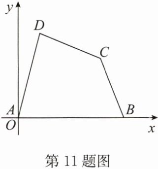 11. 如图,在平面直角坐标系中,四边形$ABCD的四个顶点坐标分别为A(0,0)$,$B(9,0)$,$C(7,5)$,$D(2,7)$,试求这个四边形的面积.