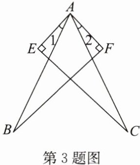 3. 如图,$AB= AC,AE= AF,AE⊥EC,AF⊥BF$,垂足分别为E,F. 求证:$∠1= ∠2$.