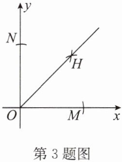 3. (2024·齐齐哈尔)如图,在平面直角坐标系中,以点O为圆心,适当长为半径画弧,交x轴正半轴于点M,交y轴正半轴于点N,再分别以点M,N为圆心,大于$\frac{1}{2}MN$的长为半径画弧,两弧在第一象限交于点H,画射线OH.若H(2a-1,a+1),则a= ______.