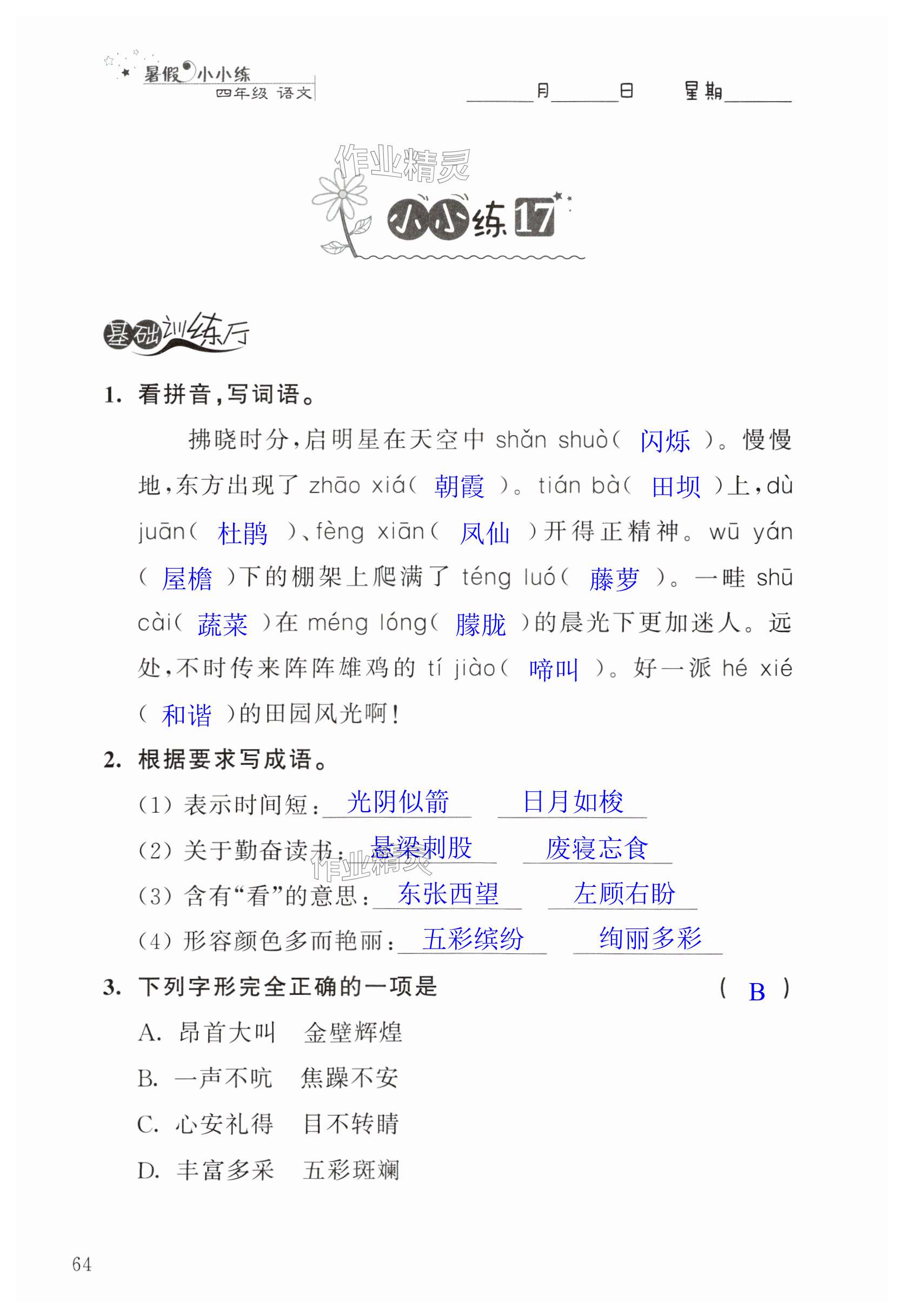 注:目前有些书本章节名称可能整理的还不是很完善,但都是按照顺序排列的,请同学们按照顺序仔细查找。练习册 2025年暑假小小练四年级语文数学英语合订本 答案主要是用来给同学们做完题方便对答案用的,请勿直接抄袭。
