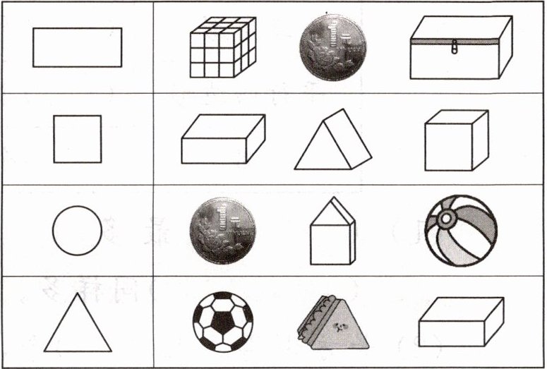 2. 左边的图形是由右边哪个物体画出来的?把这个物体圈出来。