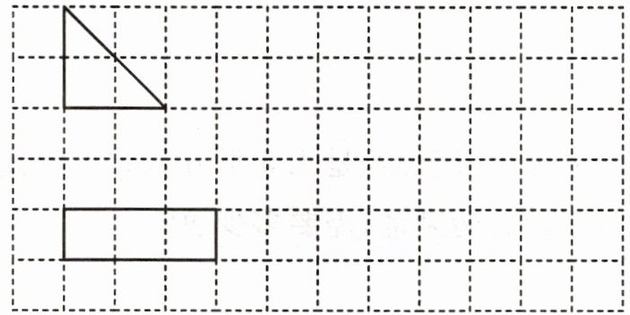 - 按上述计算的边长画出缩小后的三角形和放大后的长方形(具体画图过程略,根据计算的边长在方格纸中绘制即可)。
