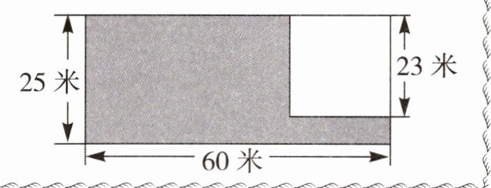 60×25=1500(平方米) 23×23=529(平方米) 1500−529=971(平方米) 25+25+60+60=170(米)