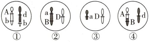 [例3] B [①配子上b基因所在片段与d基因所在片段结合,说明发生了非同源染色体的片段易位,而不是同源染色体中非姐妹染色单体的片段互换,A错误;从图中基因及染色体的关系来看,A、b基因在同一条染色体上,a、B基因在另一条与之同源的染色体上,而D、d基因位于另一对同源染色体上,①②③④可能来自同一个精原细胞(如图)