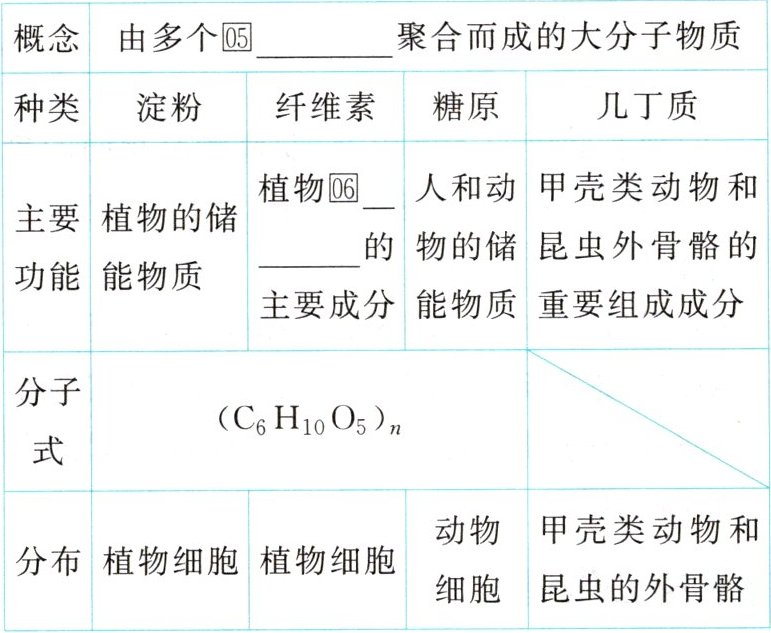 主要是$\boxed{07}$______,有些种类还含有$\boxed{08}$______。