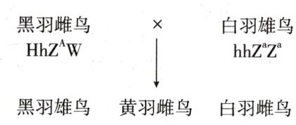 某种鸟类的羽毛颜色有黑色(存在黑色素)、黄色(仅有黄色素,没有黑色素)和白色(无色素)3 种。该性状由 2 对基因控制,分别是 Z 染色体上的 1 对等位基因 A/a(A 基因控制黑色素的合成)和常染色体上的 1 对等位基因 H/h(H 基因控制黄色素的合成)。对图中杂交子代的描述,正确的是(