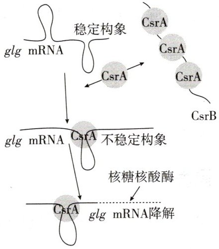 D.$CsrA$蛋白都结合到$CsrB$上,有利于细菌糖原合成