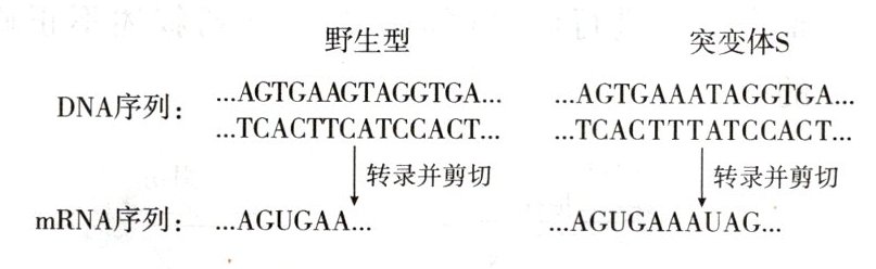 (3)转录过程中通过酶的作用合成$mRNA$。真核生物中转录合成的$mRNA$在特定位点被识别后,部分序列在此会被剪切掉,其余序列加工形成成熟的$mRNA$。据此推测,突变体$S$成熟$mRNA$序列中只多出“$AUAG$”$4$个碱基的原因是。