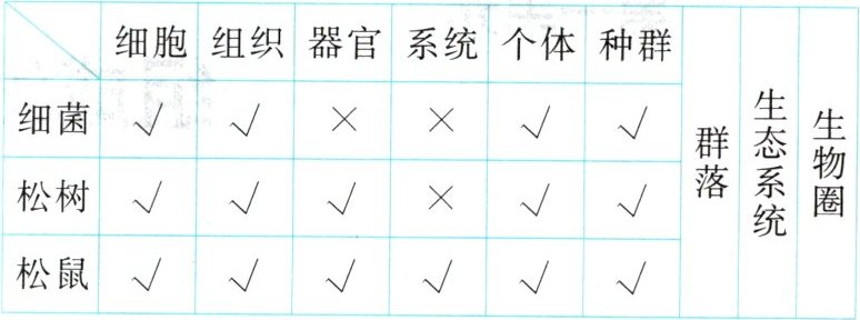 [例 2] 某同学在归纳细菌、松树和松鼠的生命系统与层次时,列出了下表: