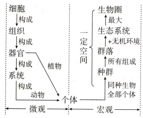 这三个结构层次。③ 生命系统的结构层次可含“非生物成分”,如生态系统、生物圈包含无机环境。