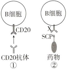 功能异常所致。(2)如图①所示,CD20是所有B细胞膜上共有的受体,人工制备的CD20抗体通过结合CD20,破坏B细胞。推测这种疗法可治疗类风湿性关节炎,其可能的副作用是__________。