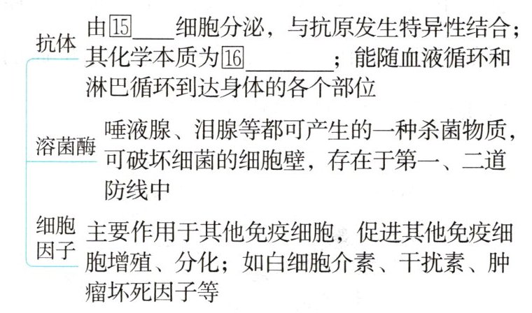 ①定义:是指由$14$______细胞产生的,并发挥免疫作用的物质。