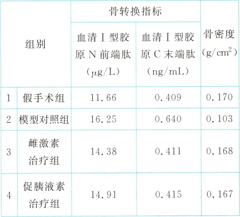 D.促胰液素可降低去除卵巢骨质疏松大鼠的骨转换指标