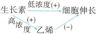 生长素浓度升高到一定值时,就会促进\underline{⑳}的合成;乙烯含量的升高,反过来会\underline{㉑}生长素的作用。
