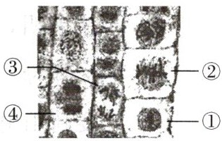2. (2024·浙江 1 月,4)观察洋葱根尖细胞有丝分裂装片时,某同学在显微镜下找到①~④不同时期的细胞,如图。关于这些细胞所处时期及主要特征的叙述,正确的是(