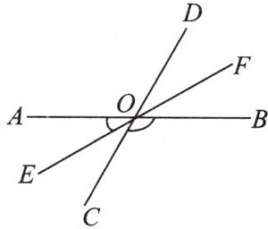 12. (★★★★)如图,直线 AB,CD 交于点 O,$∠AOE= 30^{\circ },$$∠BOC= 2∠AOC$,求$∠DOF$的度数.