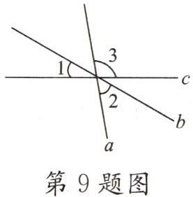 9. (★★★)如图,直线 a,b,c 交于一点,$∠1= 30^{\circ },∠2= 50^{\circ }$,则$∠3= $____.