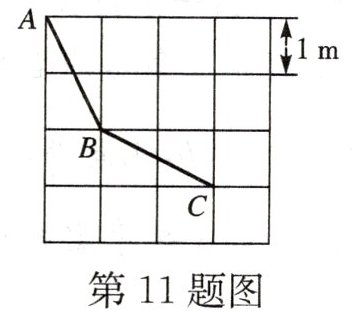 11. (★★)如图是由边长为1 m的正方形地砖铺设的地面示意图,小明沿图中所示的折线从$A→B→C$所走的路程为____.