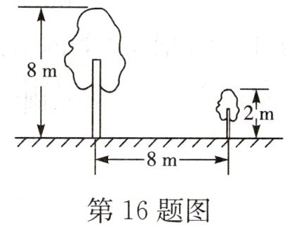 16. (★★★)如图,有两棵树,一棵高8 m,另一棵高2 m,两树相距8 m,一只小鸟从一棵树的树梢飞到另一棵树的树梢,至少要飞____m.