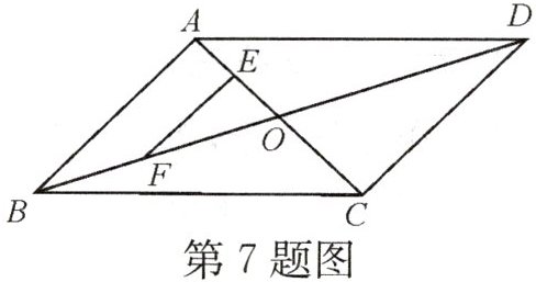 7. (★★)如图,$\square ABCD的对角线AC$,$BD相交于点O$,点$E$,$F分别是线段AO$,$BO$的中点,若$AC + BD = 24cm$,$\triangle OAB的周长是18cm$,则$EF = $____$cm$.