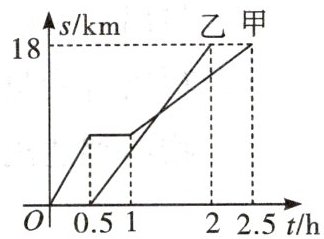 ①他们都行驶了 18 km;②甲车停留了 0.5 h;