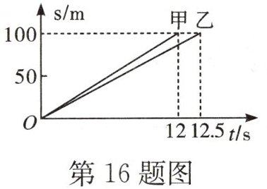 16. (★★★)假定甲、乙两人在一次赛跑中,路程 s(m)与时间 t(s)的关系如图所示,看图填空: