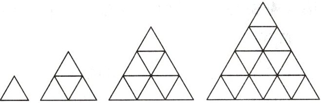 19. (★★★)有边长为$1$的等边三角形卡片若干张,使用这些三角形卡片拼出边长分别是$2$,$3$,$4…$的等边三角形(如图)。根据图形推断每个等边三角形卡片总数$S与边长n$的关系式______。