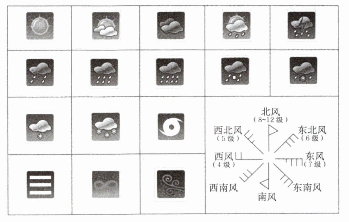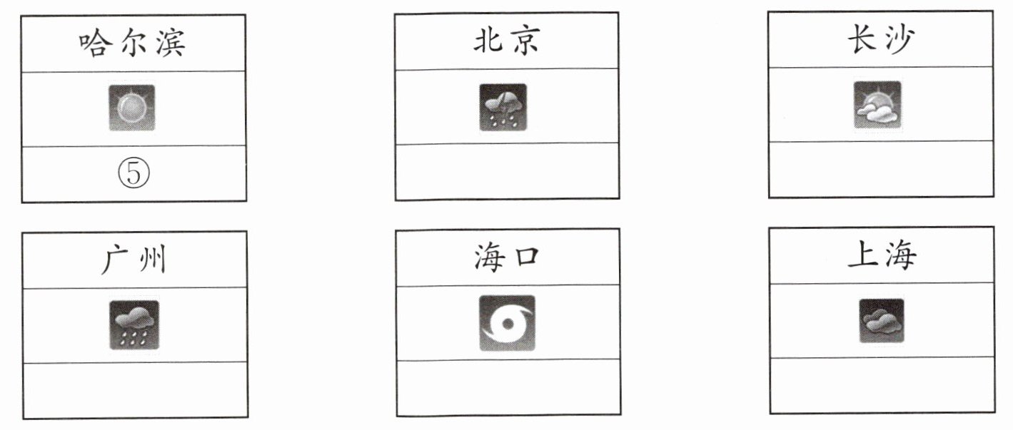 ①大雨 ②多云 ③阴 ④台风 ⑤晴 ⑥雷阵雨