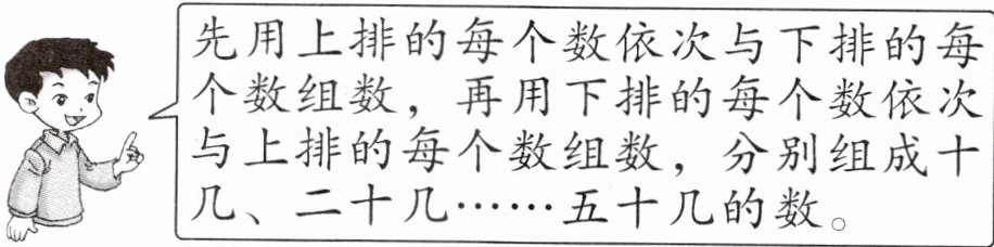 与下排$3$组成$23$;与下排$4$组成$24$;与下排$5$组成$25$。