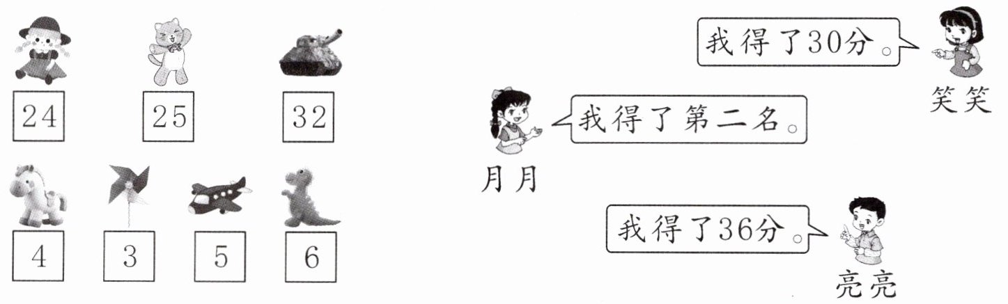 (1)笑笑可能套中了哪两个玩具?亮亮呢?用算式表示出来。