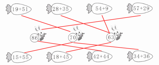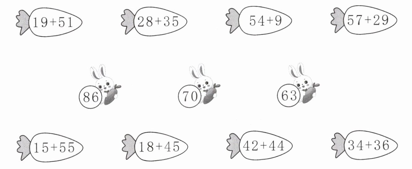 3. 小兔子拔萝卜。(连一连)