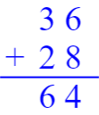 2. 计算$36 + 28$: