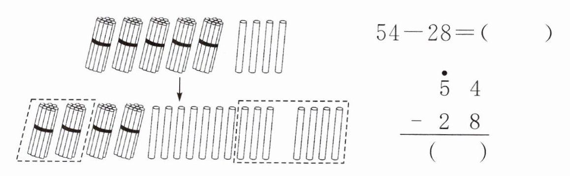 计算$61 - 28$时,个位上$1$减$8$不够减,从十位$6$上退$1$当$10$,$11 - 8 = 3$,十位上$6$退$1$后剩$5$,$5 - 2 = 3$,所以结果是$33$。