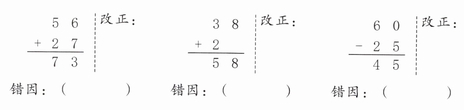 改正:$\begin{array}{r}56 \\+27 \\\hline83\end{array}$