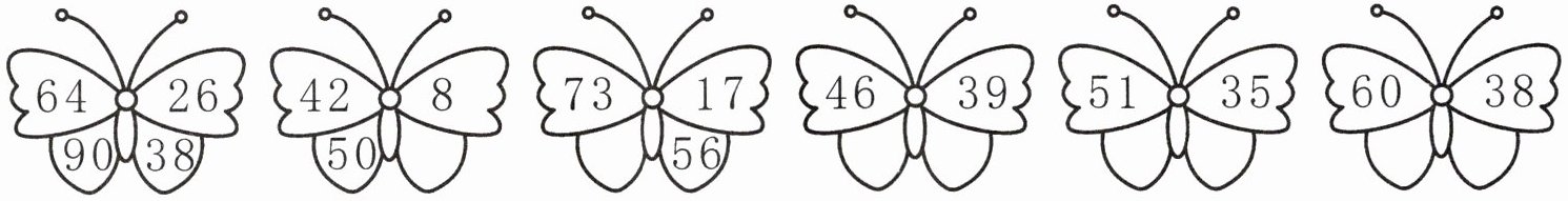 $42 + 8 = 50$,$42−8 = 34$;$73+17 = 90$;$46 + 39=85$,$46−39 = 7$;$51+35 = 86$,$51−35 = 16$;$60 + 38=98$,$60−38 = 22$。