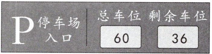 【解析】:已知总车位数是$60$,剩余车位数是$36$,用总车位数减去剩余车位数就是停车场已停车辆数,即$60 - 36 = 24$(辆)。