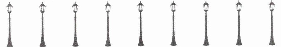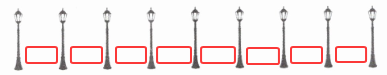 下面有$9$个路灯,在相邻两个路灯之间各放一把长椅。一共可以放多少把长椅?