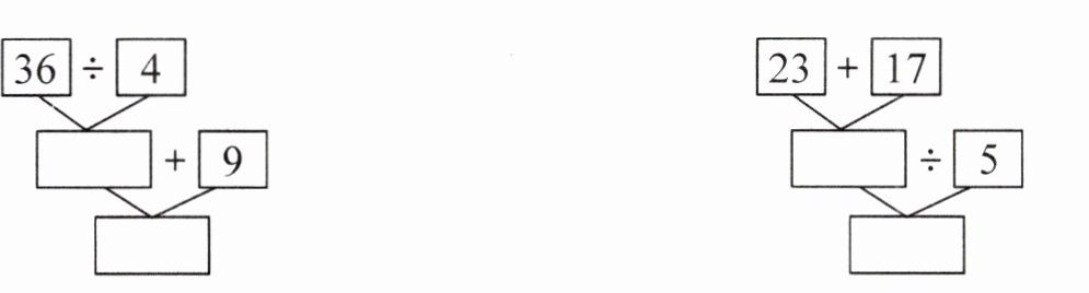 - 对于左边的图:先算$36\div4 = 9$,再算$9 + 9 = 18$,综合算式为$36\div4 + 9$。