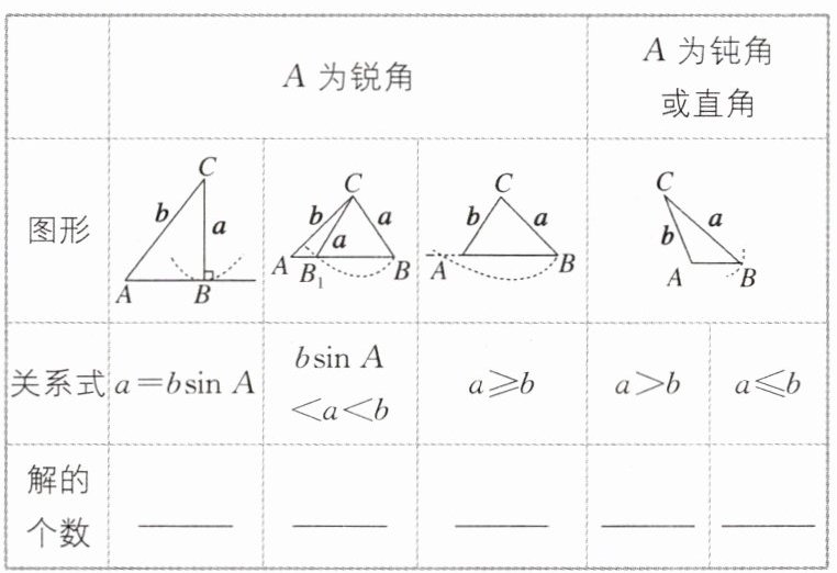 2. 在$\triangle ABC$中,已知$a$,$b$和$A$时,解的情况如下: