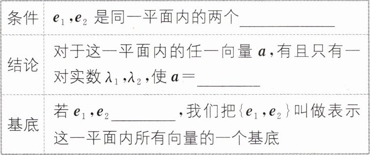 1.不共线向量 $\lambda_1\boldsymbol{e_1} + \lambda_2\boldsymbol{e_2}$ 不共线