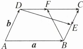 4. (北师大必修二 P100 例 1 改编)如图,在$□ ABCD$中,点$E$,$F$分别为$BC$,$DC$的中点,$\overrightarrow{AB}=a$,$\overrightarrow{AD}=b$,则$\overrightarrow{BF}=$