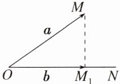 如图,在平面内任取一点$O$,作$\overrightarrow{OM}=\boldsymbol{a}$,$\overrightarrow{ON}=\boldsymbol{b}$,过点$M$作直线$ON$的垂线,垂足为$M_1$,则