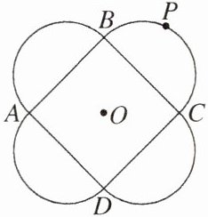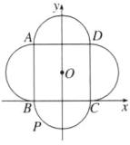 例1 (2025·安徽六校测试)已知正方形 $ABCD$ 的边长为 $2$,中心为 $O$,四个半圆的圆心均为正方形 $ABCD$ 各边的中点(如图),若 $P$ 在 $\overset{\frown}{BC}$ 上,且 $\overrightarrow{AP}=\lambda\overrightarrow{AB}+\mu\overrightarrow{AD}$,则 $\lambda+\mu$ 的最大值为________.