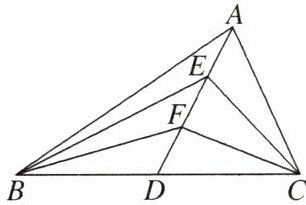 典例 (1)如图,在三角形 $ABC$ 中,$D$ 是 $BC$ 的中点,$E$,$F$ 是 $AD$ 上的两个三等分点,$\overrightarrow{BA}\cdot\overrightarrow{CA}=4$,$\overrightarrow{BF}\cdot\overrightarrow{CF}=-1$,则 $\overrightarrow{BE}\cdot\overrightarrow{CE}$ 值为