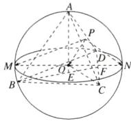 又因为$MN$是外接球的一条直径,所以$\overrightarrow{OM}+\overrightarrow{ON}=0$,且$|\overrightarrow{OM}|=|\overrightarrow{ON}|=\frac{\sqrt{6}}{2}$,