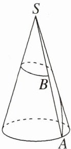 例 3 (2025·衡阳质检)如图是一座山峰的示意图,山峰大致呈圆锥形,峰底呈圆形,其半径为 $ 1 \, km $,峰底 $ A $ 到峰顶 $ S $ 的距离为 $ 4 \, km $,$ B $ 是山坡 $ SA $ 的中点. 为了发展当地旅游业,现要建设一条从 $ A $ 到 $ B $ 的环山观光公路,当公路长度最短时,公路距山顶的最近距离为 (