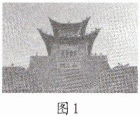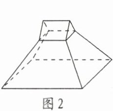 (2) (2024·兰州诊断)攒尖是中国古建筑中屋顶的一种结构形式,兰州市著名景点三台阁(如图 1)的屋顶部分是典型的攒尖结构. 如图 2 所示是某研究性学习小组制作的三台阁仿真模型的屋顶部分,它可以看作是不含下底面的正四棱台和正三棱柱的组合体,已知正四棱台上底边、下底边、侧棱的长度(单位:$ dm $)分别为 $ 2 $,$ 6 $,$ 4 $,正三棱柱各棱长均相等,则该结构的表面积为____ $ dm^2 $.