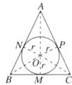 且$M$,$N$,$P$分别为切点,$M$为$BC$的中点,设内切圆的圆心为$O$,连接$AM$,$OB$,$OC$,$ON$,$OP$,