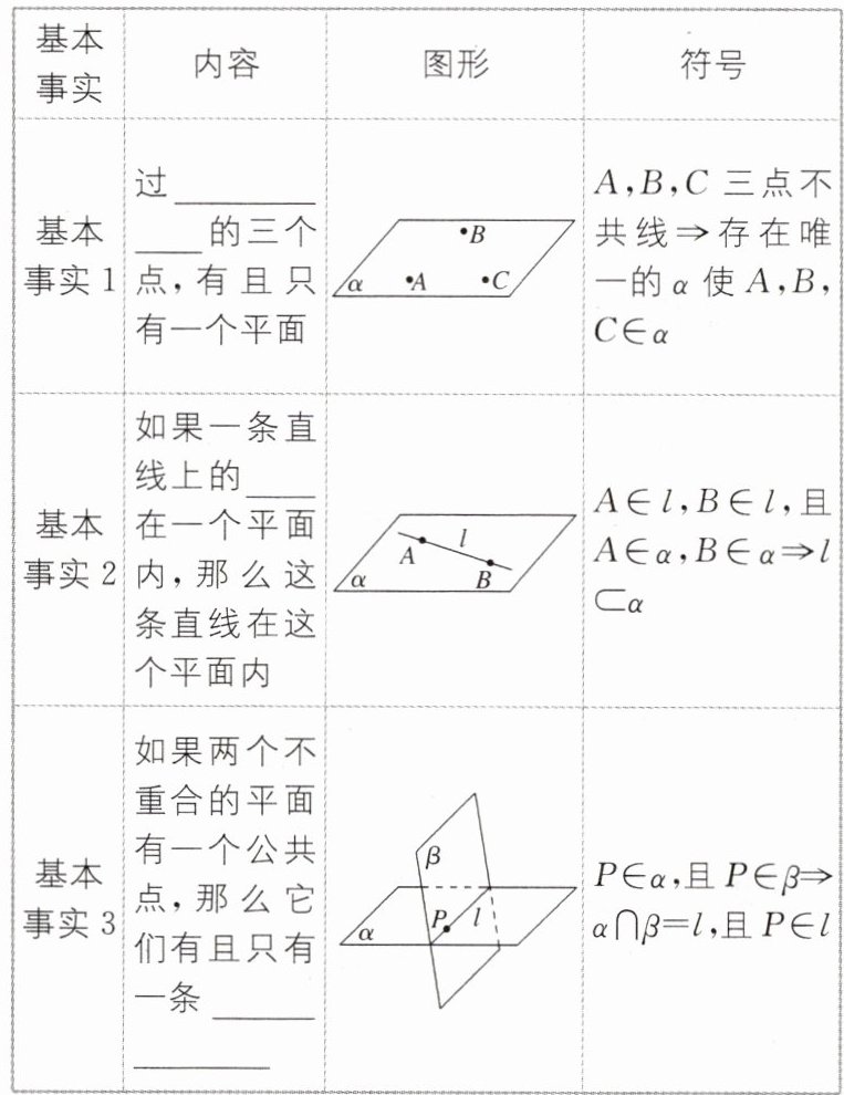 (1)与平面有关的三个基本事实