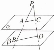 如图,已知$\alpha//\beta$,点$P$是平面$\alpha,\beta$外的一点,直线$PA$和$PC$分别与$\beta$相交于$B$和$D$,若$PA = 4\ cm,AB = 5\ cm,PC = 3\ cm$,则$PD=$